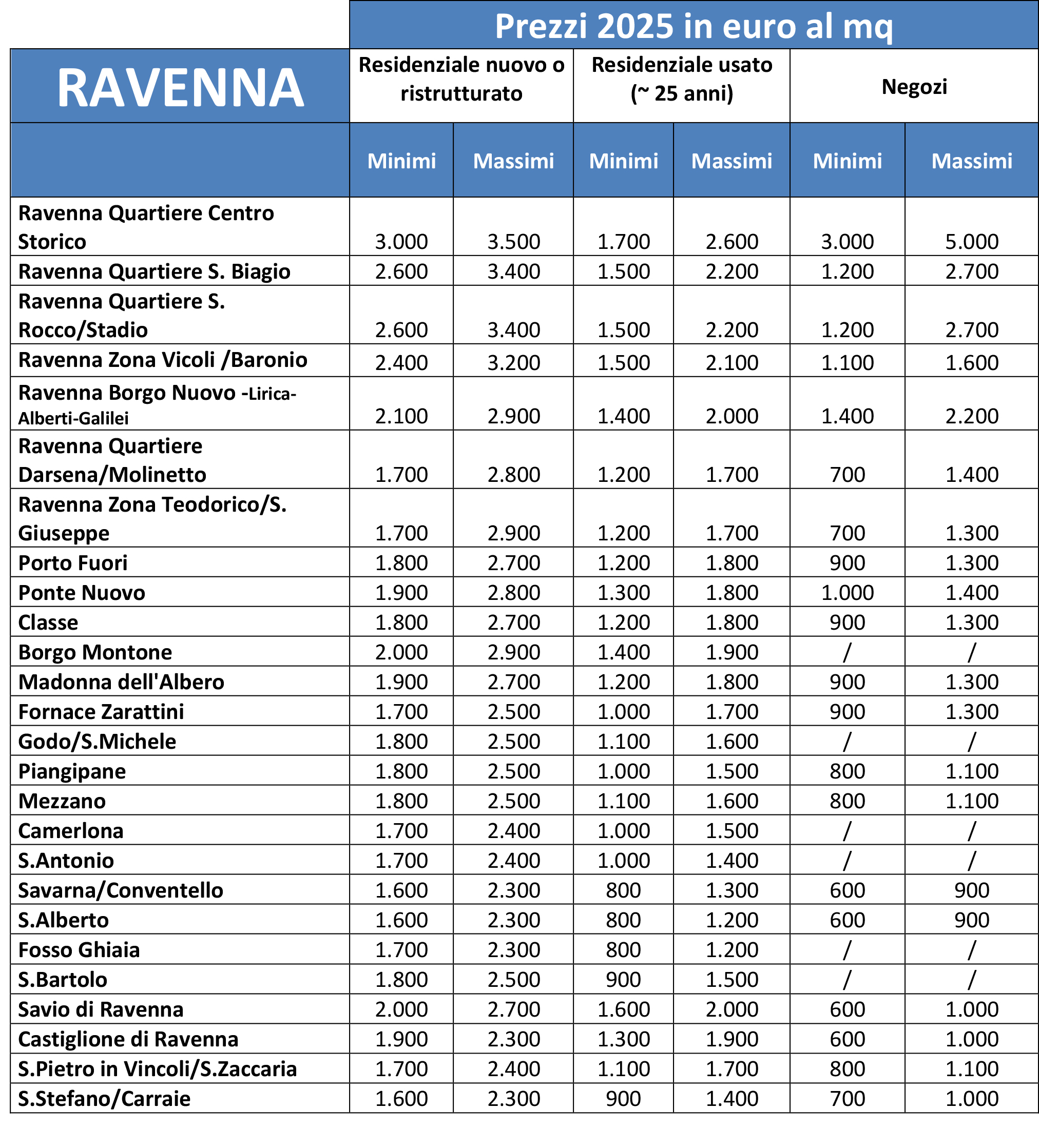 Case, segnali di ripresa. Tutti i prezzi dei quartieri e delle frazioni di Ravenna, dei Comuni della provincia