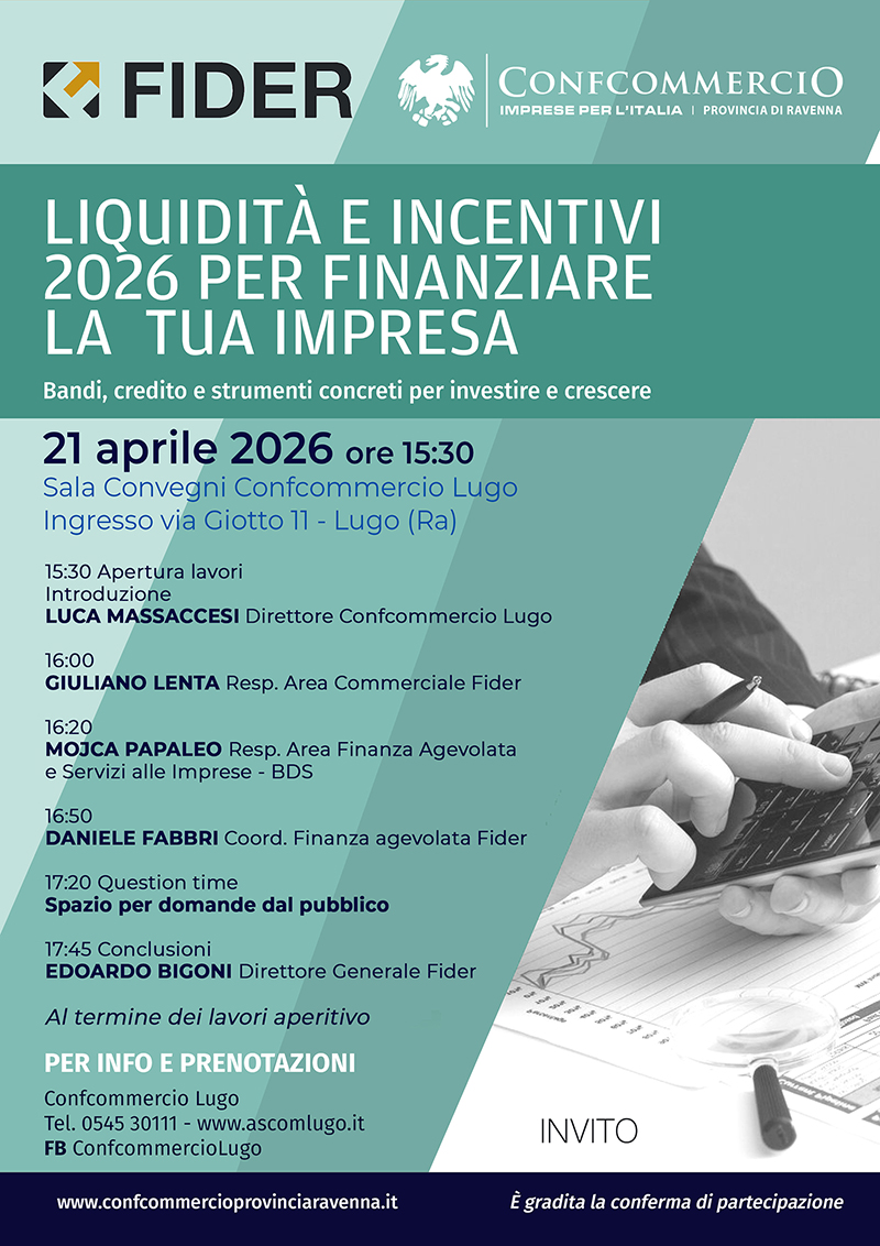 21 aprile 2026 ore 15:30 Sala Convegni Confcommercio Lugo  Ingresso via Giotto 11 - Lugo (Ra)