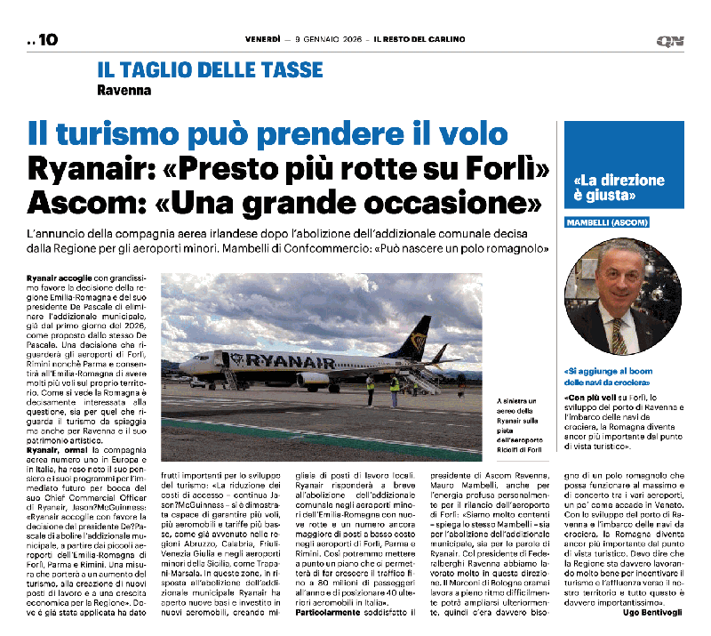 IL TURISMO PUÒ PRENDERE IL VOLO RYANAIR: «PRESTO PIÙ ROTTE SU FORLÌ» ASCOM: «UNA GRANDE OCCASIONE»