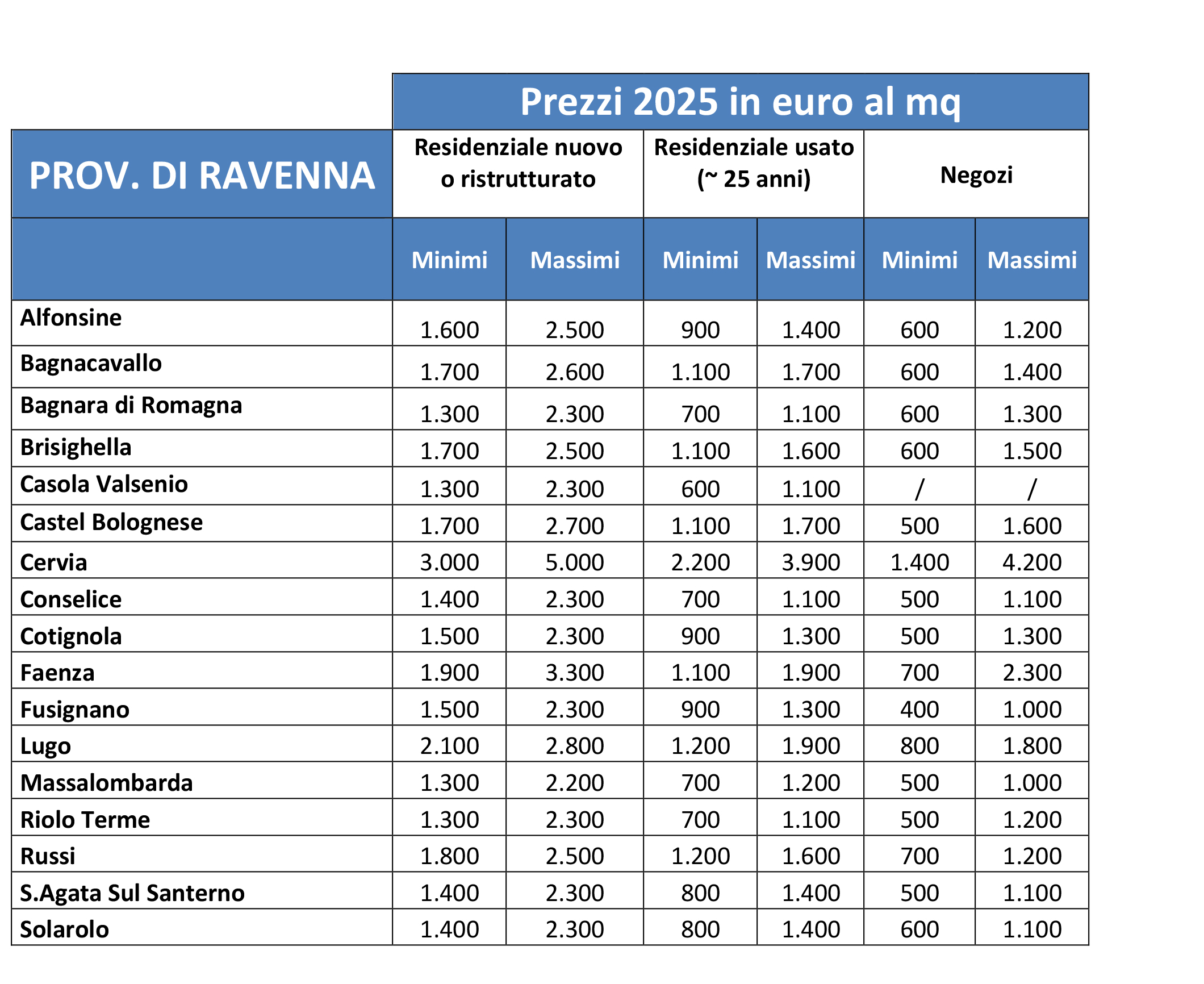 SEGUONO TABELLE PREZZI RAVENNA E PROVINCIA